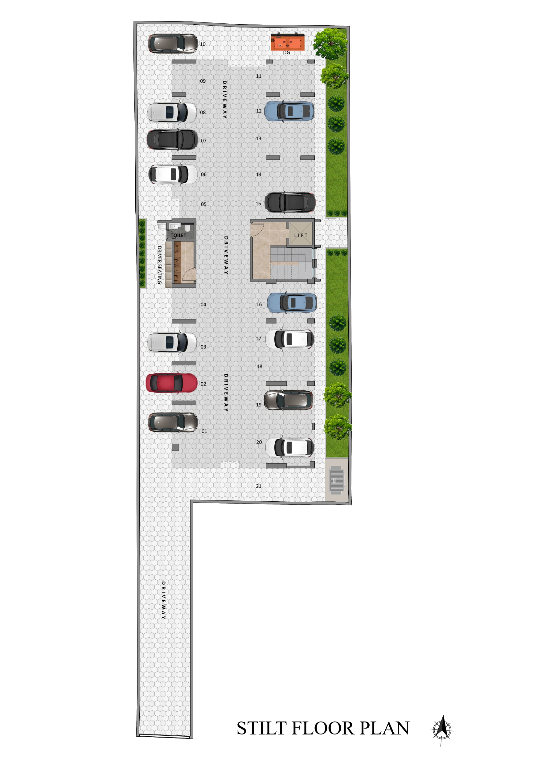 • Generator Back-up: All Lobbies, Corridors, Car Parking, Driveways, Staircases and Lifts will have 100% Generator and all flats will be provided with one Light and one Fan in all the Rooms and relevant plug points as required
